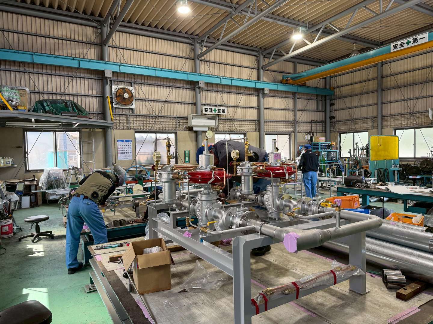 - 配管の取り付け: 設計図に基づいて、配管材を切断、曲げ、溶接などの作業を行い、建物に配管を取り付けます。